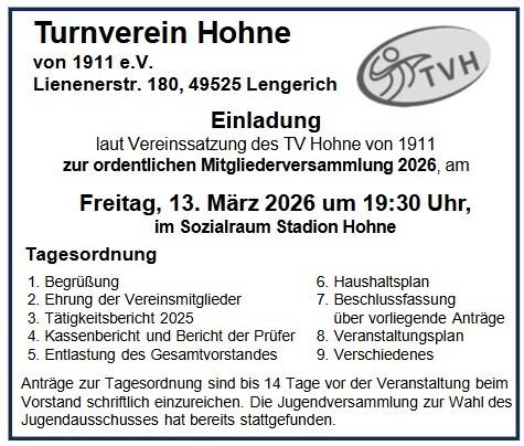 Willkommen beim TV Hohne von 1911 e.V. in Lengerich