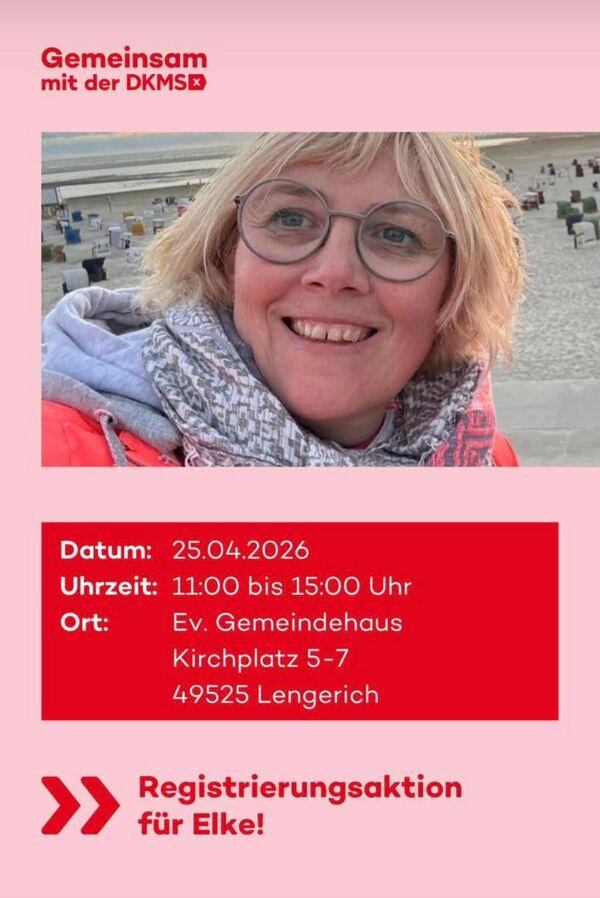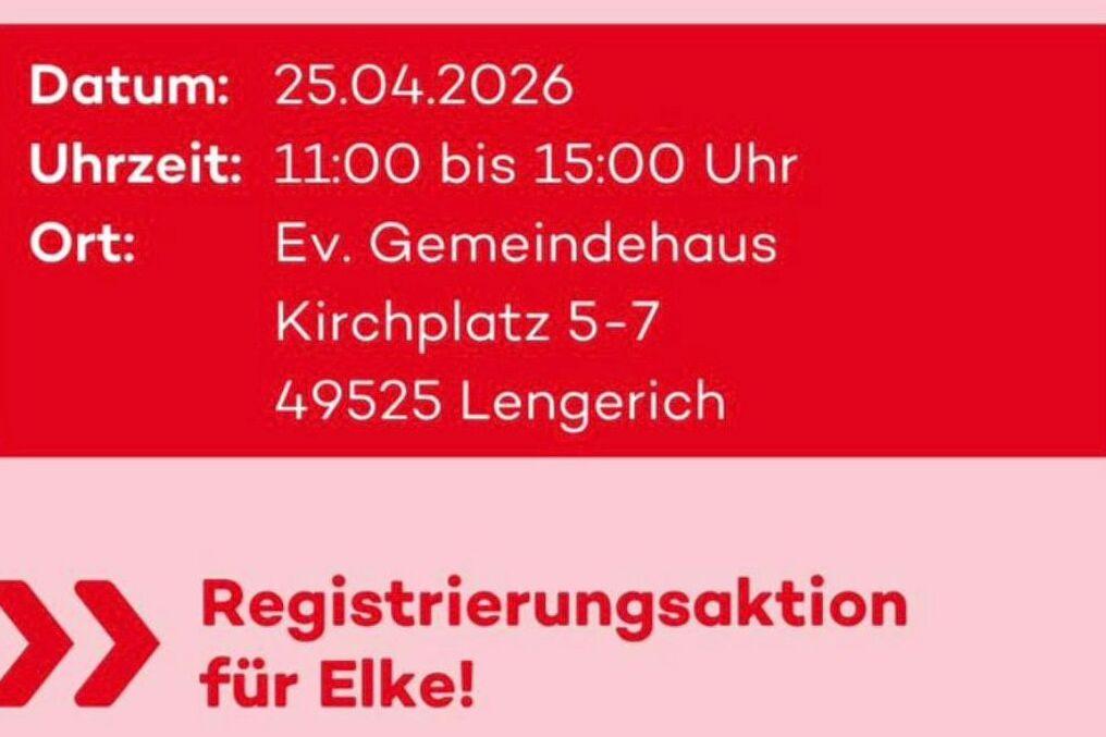 Am 25. April (11–15 Uhr) findet im Gemeindehaus Lengerich eine DKMS-Registrierungsaktion statt – unkompliziert, schnell und kostenlos! Spender kann jeder im Alter zwischen 17 und 55 Jahren sein.