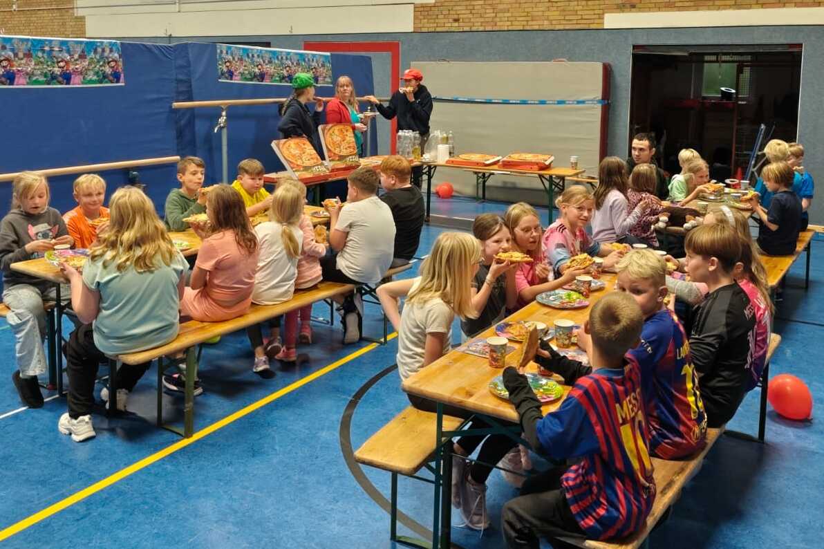 Dazu trafen sich 26 Kinder und ihre Betreuer am Freitag den 26. September in der Turnhalle in Hohne. Nachdem die Teams Mario, Luigi, Peach und Yoshi festgelegt waren, ging es auch schon los mit den Minispielen. Ob beim Hindernisparcours, alle Bilder beim Memory merken oder natürlich auf der Rennstrecke bei Mario-Kart, gaben die Kinder alles, um den Sieg zu erringen. Und bei so viel Action, darf natürlich eine, ganz dem italienischen Titelhelden typische Stärkung, von Pizza nicht fehlen.